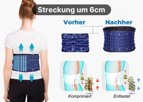 Der Lumbara dekomprimiert Ihre Wirbelsäule auf sanfte Weise, indem er die Lufttaschen im Gerät aufbläst. Dadurch wird Ihre Wirbelsäule in ihren natürlichen Zustand zurückgebracht und die Schmerzen und der Druck, der durch das Gewicht Ihres gesamten Körpers auf die empfindliche untere Wirbelsäule ausgeübt wird, werden gelindert. Tausende von Kunden haben berichtet, dass ihr unterer Rücken sofort nach dem Aufblasen des Lumbara entlastet wird und dass die Wirbelsäule bei regelmäßiger Anwendung langfristig geheilt wird.